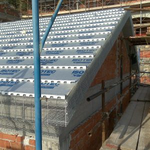 Cornicioni in rete zincata a caldo: una soluzione leggera, resistente e durevole, pensata per una finitura esterna in intonaco e per ridurre il ponte termico tipico dei cornicioni in cemento armato.