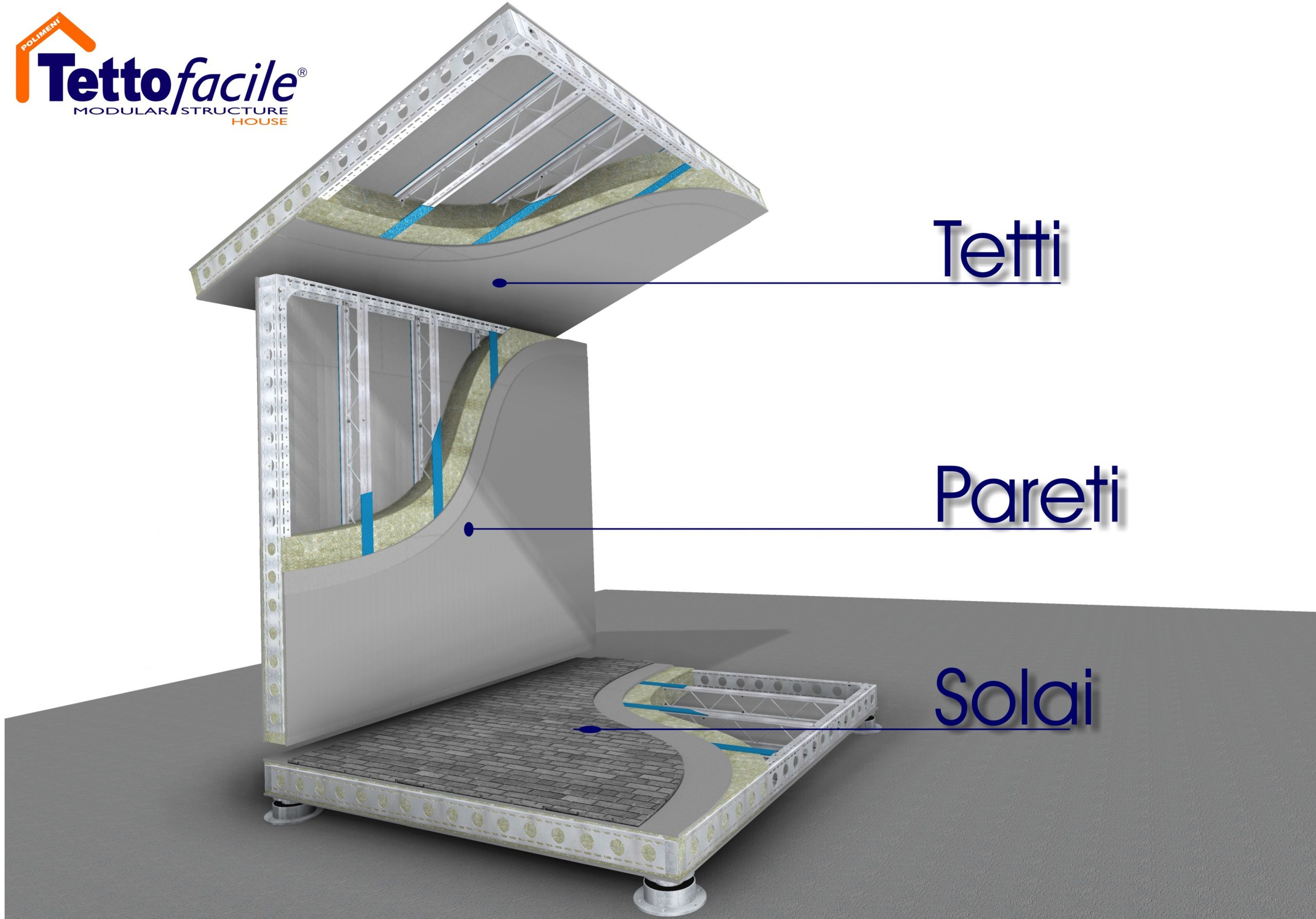 Per la realizzazione del vostro nuovo tetto, Tettofacile® utilizza un sistema costruttivo modulare, in acciaio zincato a caldo, con finiture a secco, leggero, resistente, antisismico, anti intrusione, ventilato e soprattutto durevole senza bisogno di manutenzioni, che consente, anche, la sopraelevazione dell’immobile.