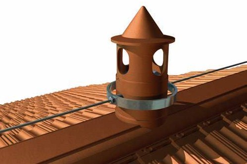 Inserito all’interno del camino in cotto usato per il sistema Tettofacile ventilato , si ottiene il duplice vantaggio di eliminare gli inestetismi dei normali dispositivi anticaduta e dare comunque la predisposizione con un “Punto certo” a chi voglia posticipare l’installazione dei dispositivi anticaduta.