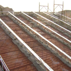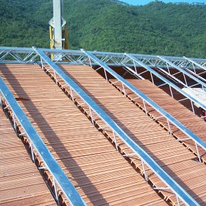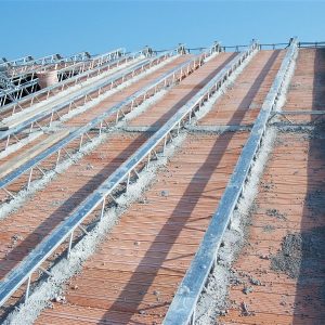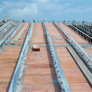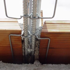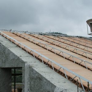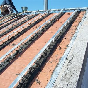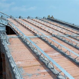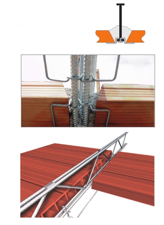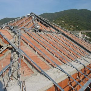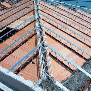 Staffe in acciaio incrudito zincato da agganciare facilmente in opera, atte al supporto delle tavelle che in seguito verranno murate in prossimità di ogni traliccio.