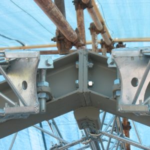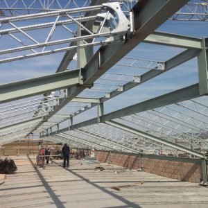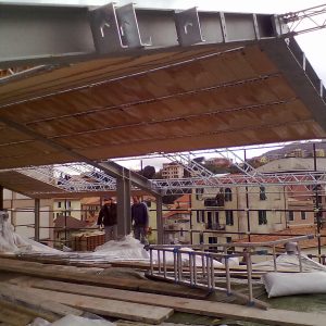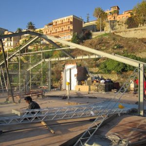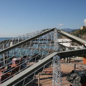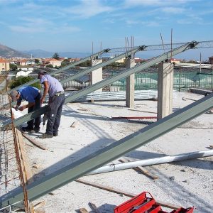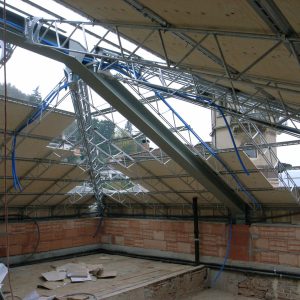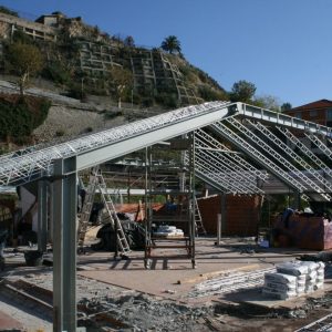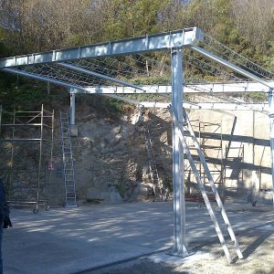 La struttura viene assemblata in opera tramite bulloneria e componenti standard: questo permette la regolazione in cantiere di geometrie, dimensioni e pendenze, con una logica “tipo meccano”.